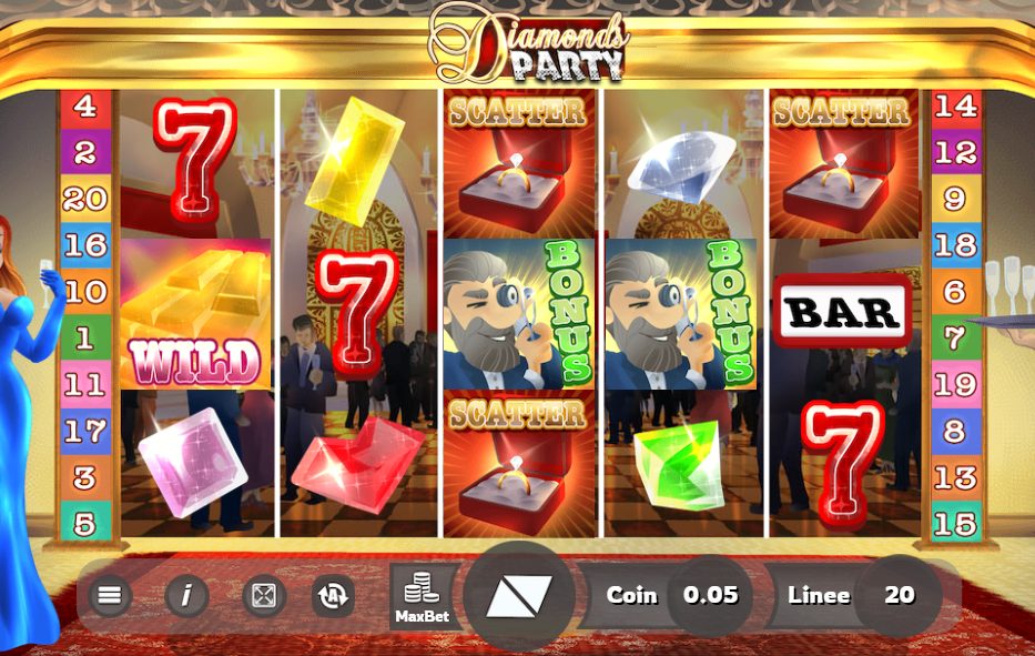 - Diamonds Party features progressive jackpots that can grow with each bet placed by players, offering the chance to win a massive jackpot.